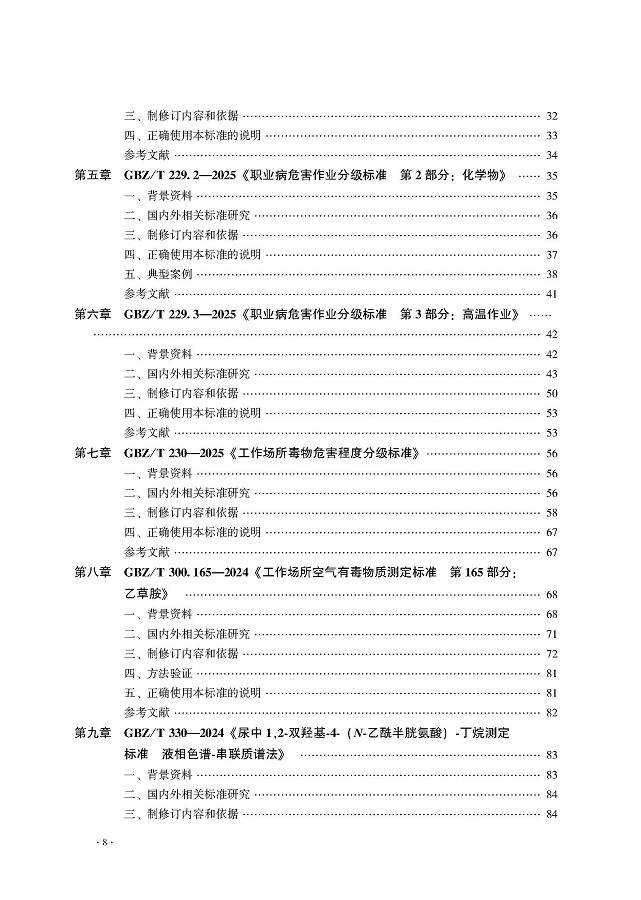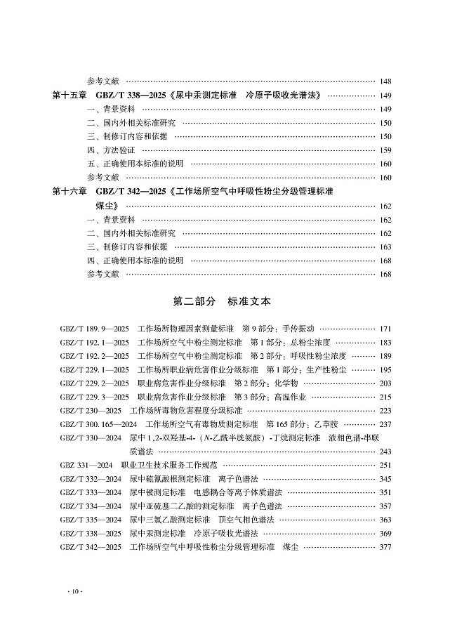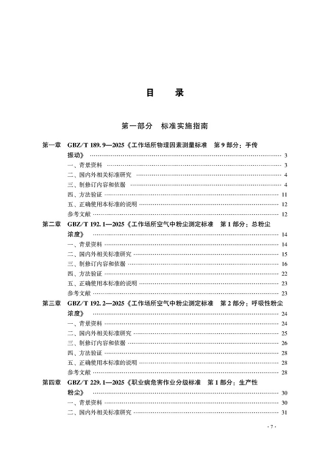 为更好帮助广大从事职业健康相关工作的专业技术人员深入理解和正确掌握新发布的职业健康标准,职业健康标准专业委员会秘书处组织标准起草人和有关专家撰写《职业健康标准及实施指南(2025)》,主要对新发布标准的技术内容和制定依据进行说明和解读。本指南分为三部分:第一部分为标准实施指南,主要对近两年新发布的16项职业健康标准的主要内容和制修订依据进行说明。第二部分内容是已发布的标准文本,第三部分是标准解读稿。